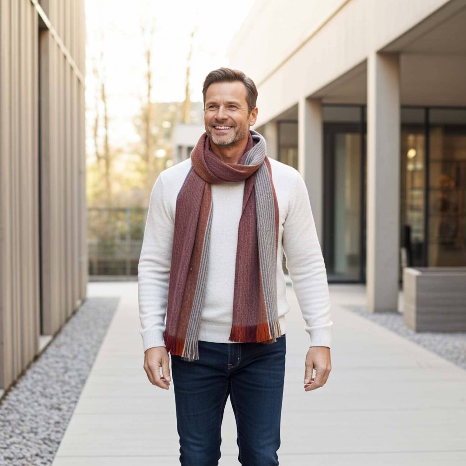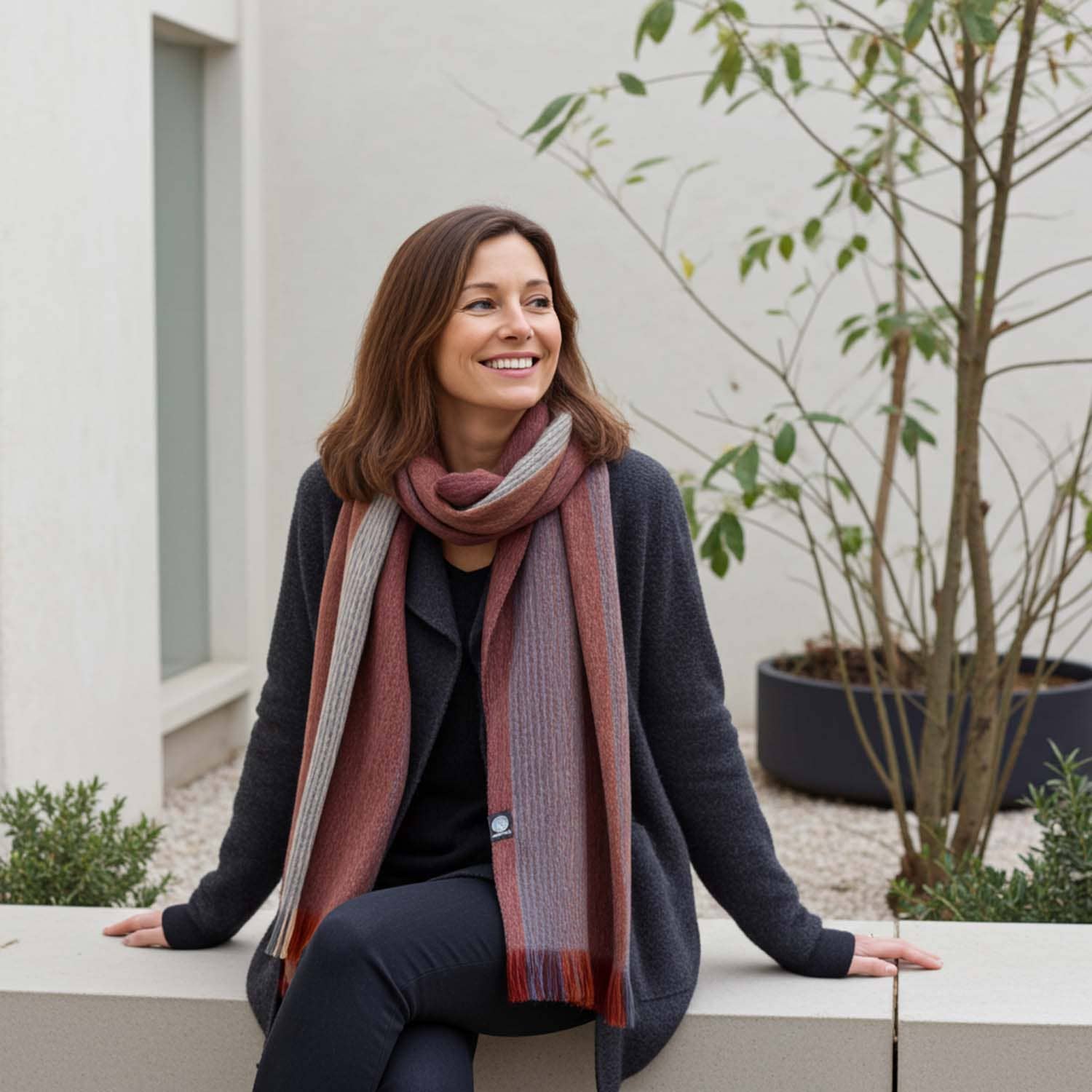 Ge din kollektion en kryddig boost med Cayenne-alpackahalsduken , med varma, jordnära ränder i bränt orange, mjuka plommonfärgade, lerfärgade toner och ljunggrått. Denna borstade alpackahalsduk kombinerar rustik charm med ökad komfort och är definitivt ett blickfång i både höst- och julkollektioner .